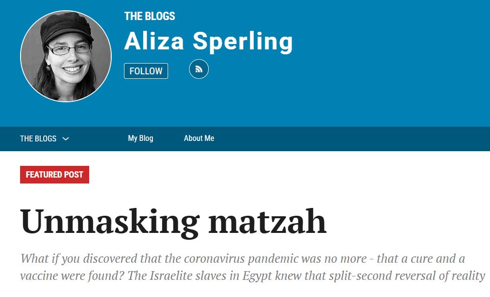 Unmasking Matza — Rabbanit Aliza Sperling in Times of Israel, 2020