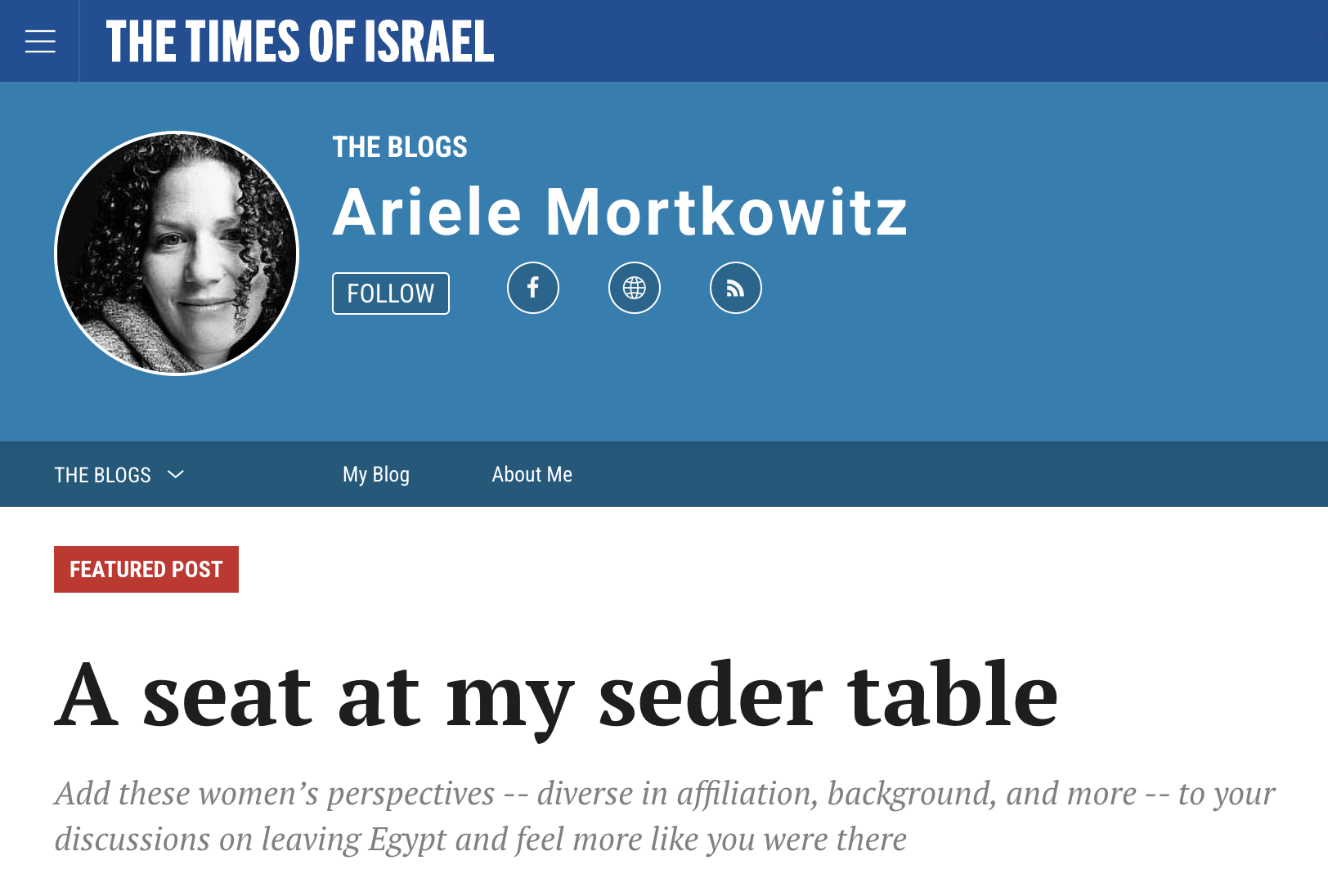“A seat at my seder table”— Ariele Mortkowitz in Times of Israel, 2019